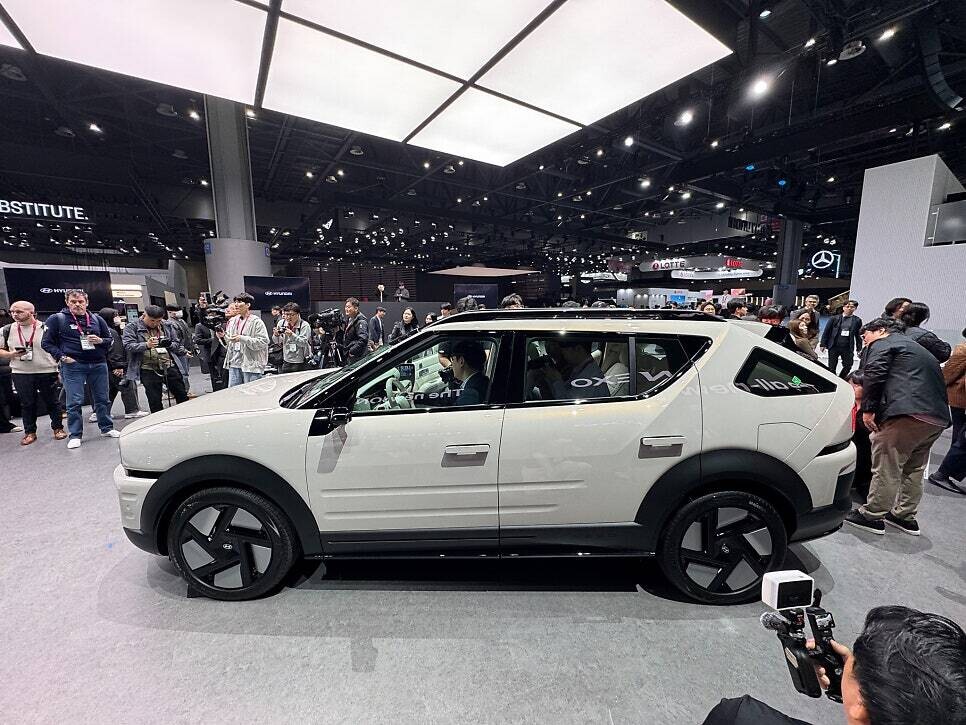 기아 전시관에서는 브랜드 첫 번째 목적기반차(PBV)인 'PV5'가 국내 최초로 공개됐다. 여객, 카고, 교통약자 탑승 등 다양한 라인업으로 구성된 가운데, LG전자와 협업해 TV·오븐·인덕션·냉장고 등 가전제품을 모듈 형태로 탑재한 콘셉트카가 특히 큰 관심을 끌었다. 이를 지켜보던 한 관람객은 "캠핑 갈 때 딱 맞겠다"며 반색했다.