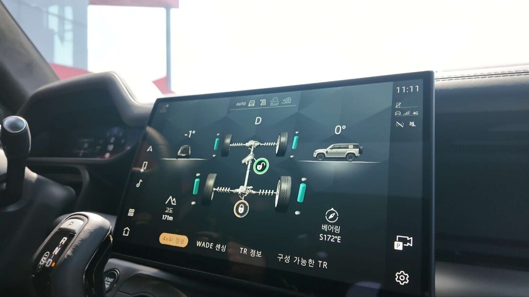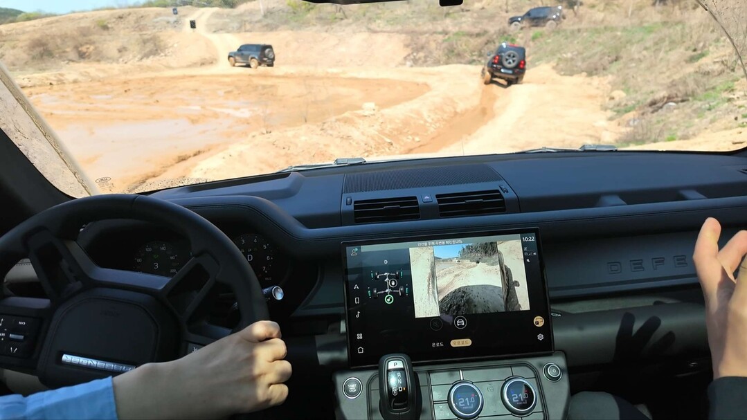 돌산을 넘자 눈앞에 개울이 나타났다. 깊이 70~80cm. 웬만한 세단이라면 시동이 꺼질 깊이다. 디펜더 옥타 블랙은 달랐다. 일반 디펜더보다 10cm 더 깊은 1m까지 도강이 가능하도록 설계된 이 차는, 수중 카메라로 찍은 바닥 영상과 실시간 수심까지 디스플레이에 띄워줬다. 가슴을 쓸어내리면서도 액셀을 밟을 수 있었던 건 그 덕분이었다.